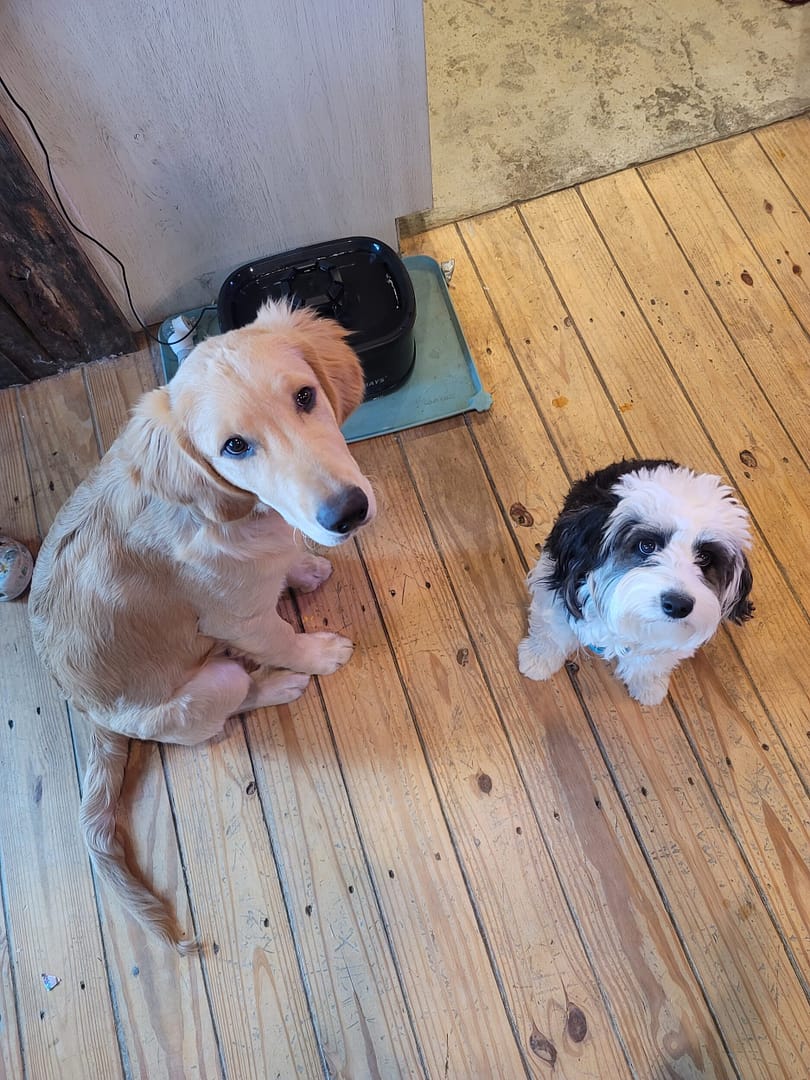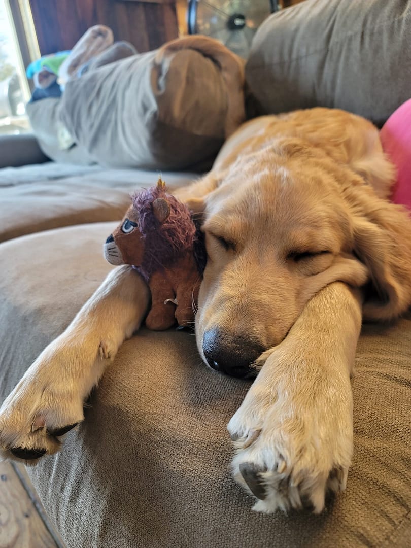 We want our friends to enjoy their time with us. This includes snuggles on the couch, and playtime. We only kennel at bedtime, and all dogs must be kenneled.